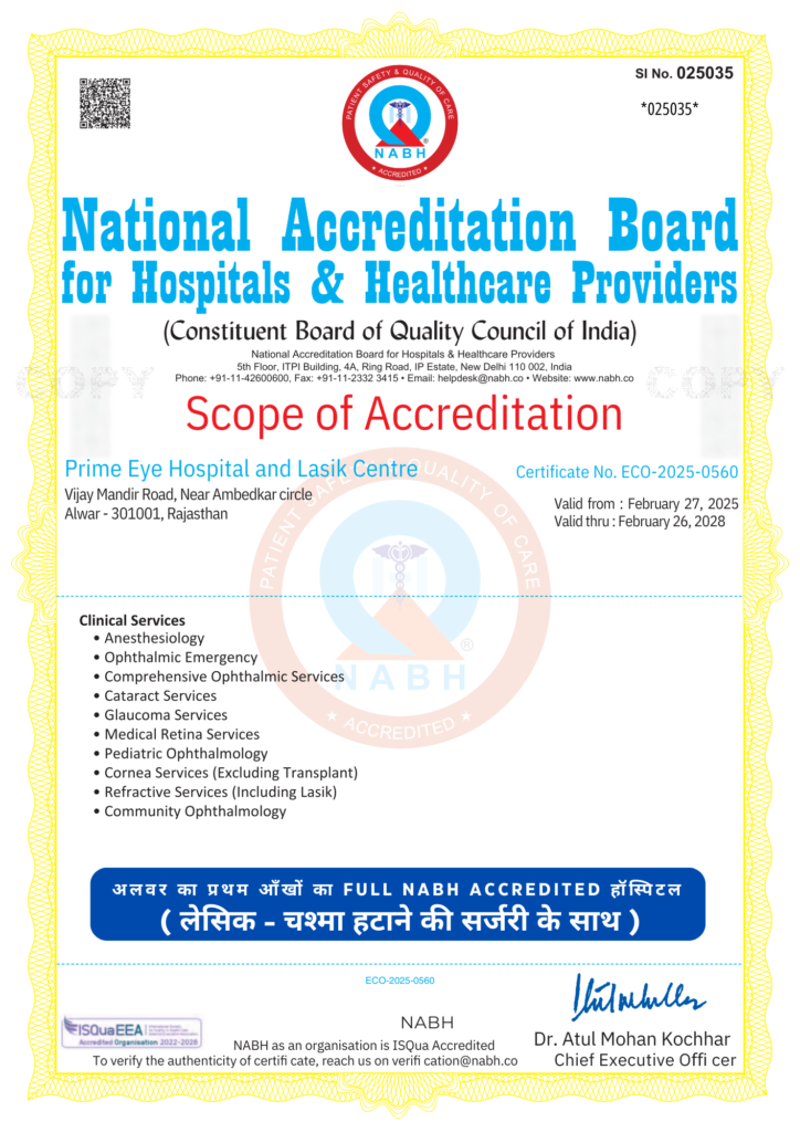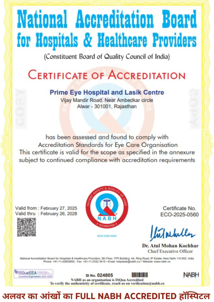 अलवर का प्रथम आँखों का Full NABH Accredited हॉस्पिटल( लेसिक चश्मा हटाने की सर्जरी के साथ )